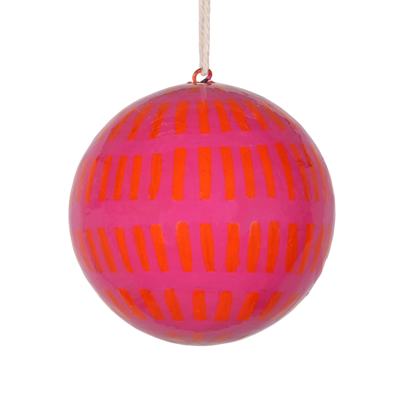 One-of-a-kind hand-painted baubles. Handmade from recycled materials, about 7cm wide, and finished with a matching cord. Studio THIE cooks up design-led, heirloom-level decorations - playful, punchy and made with proper care.